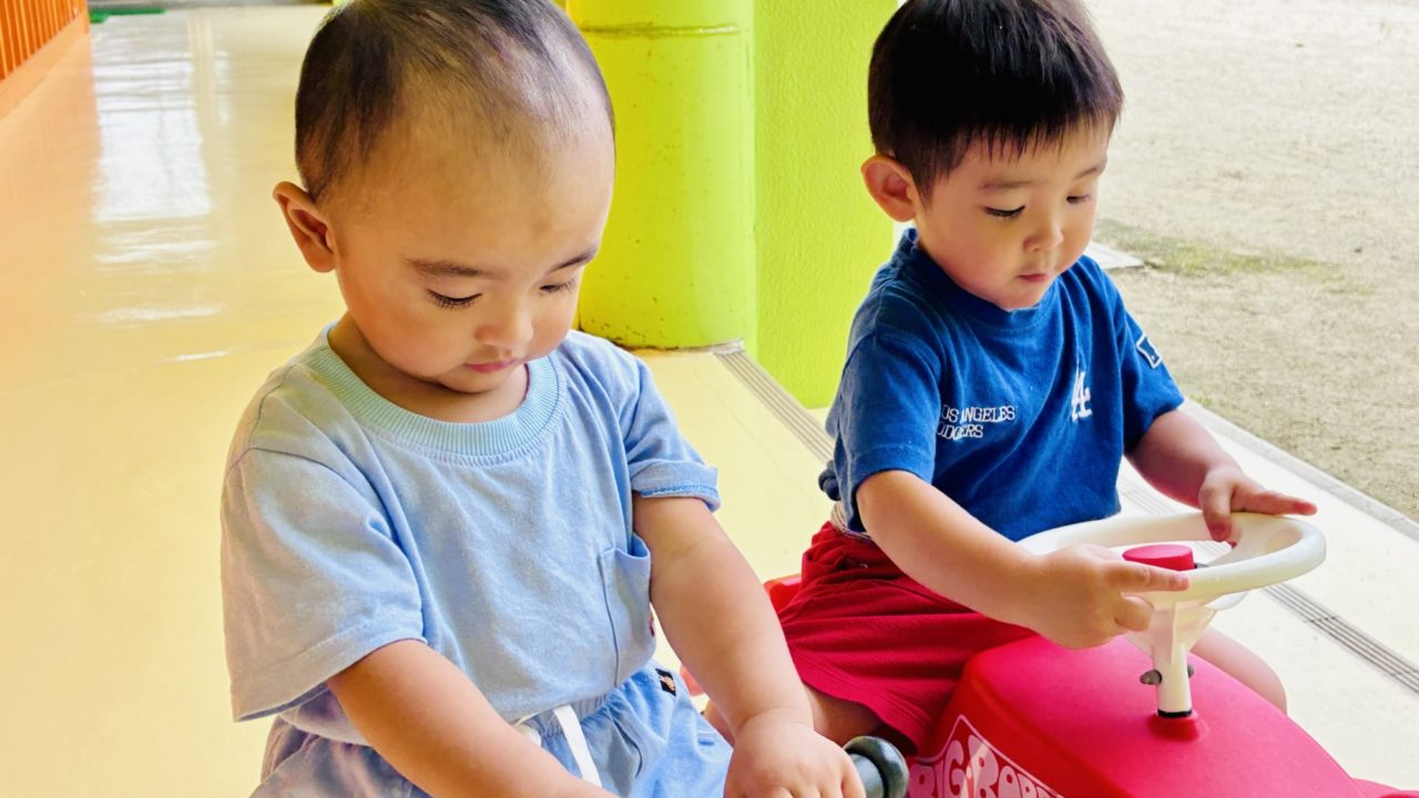 Blog 2学期スタート🍌 waku2 2025年9月3日 新しいお友だちNちゃん🤗 まだ3日目なので少し涙がでていますがRくんがおもちゃを貸してくれたりする姿が微笑ましいです☺️ Sくん🤗車に乗って足で進む練習中です👏 自転車も興味深々です✨✨ 振り向いてカメラ目線😊 電車が来たら「バイバイ〜」👋手を振ったね❣️ 新学期スタートして一人ひとりの成長をみて嬉しく思います🥲 お家でもお話し聞いてみてください☺️ hiromi🍌