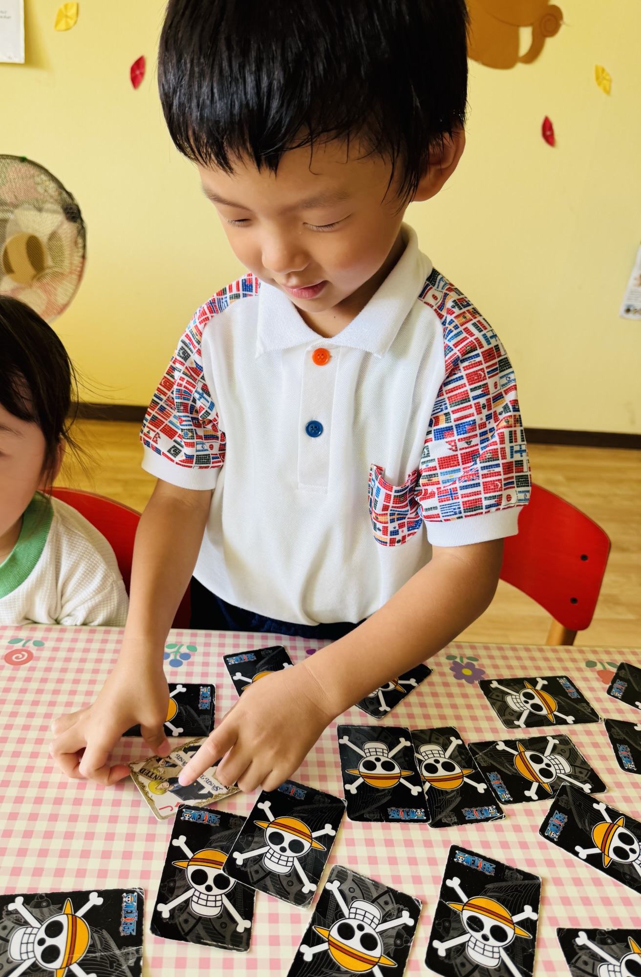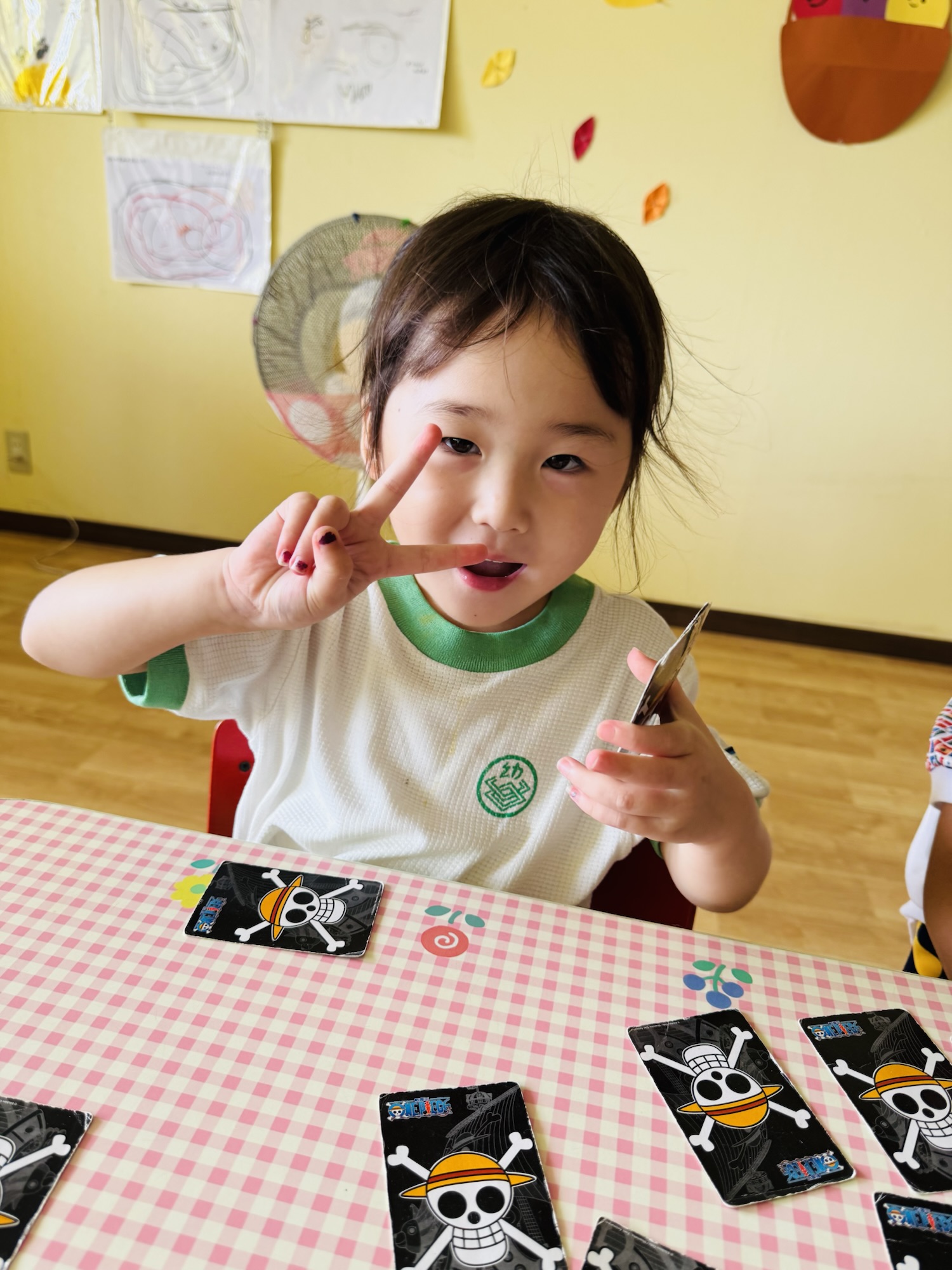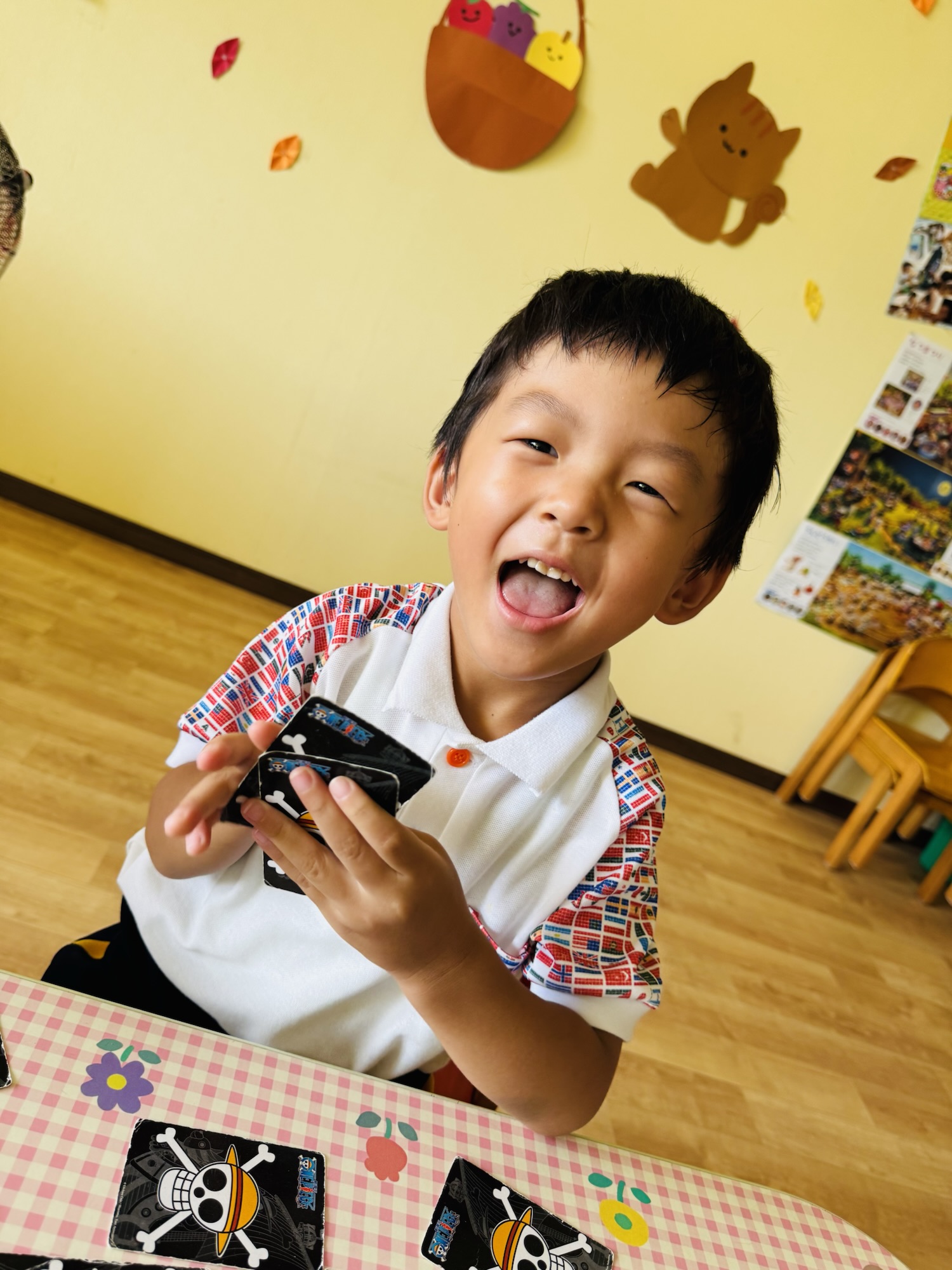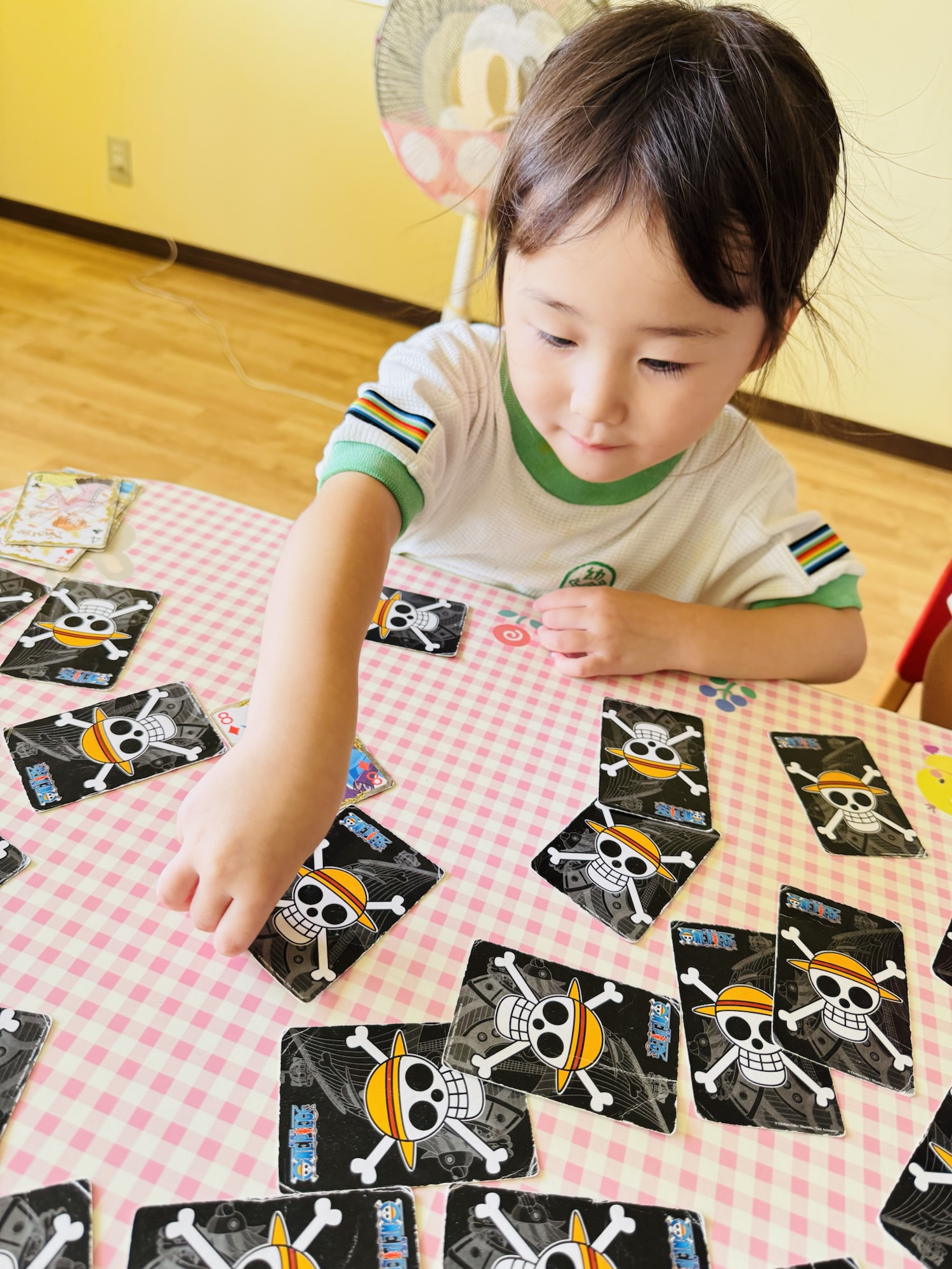 Blog しんけいすいじゃく♠️✨ waku2 2025年9月10日 今日は🍑組さん神経衰弱をして遊びました✨ 🍌組さんはお昼ね中😴 初めは「んー?🤔」と悩みながらしていましたが、途中から少しずつルールを覚えて楽しそうにしていました✨ 同じマークを見つけてやったぁ☺️と喜んでいましたよ☺️ 楽しかったね☺️ また遊ぼうね✨ お家でもお話し聞いてみてください☺️ 🍑airi🍌