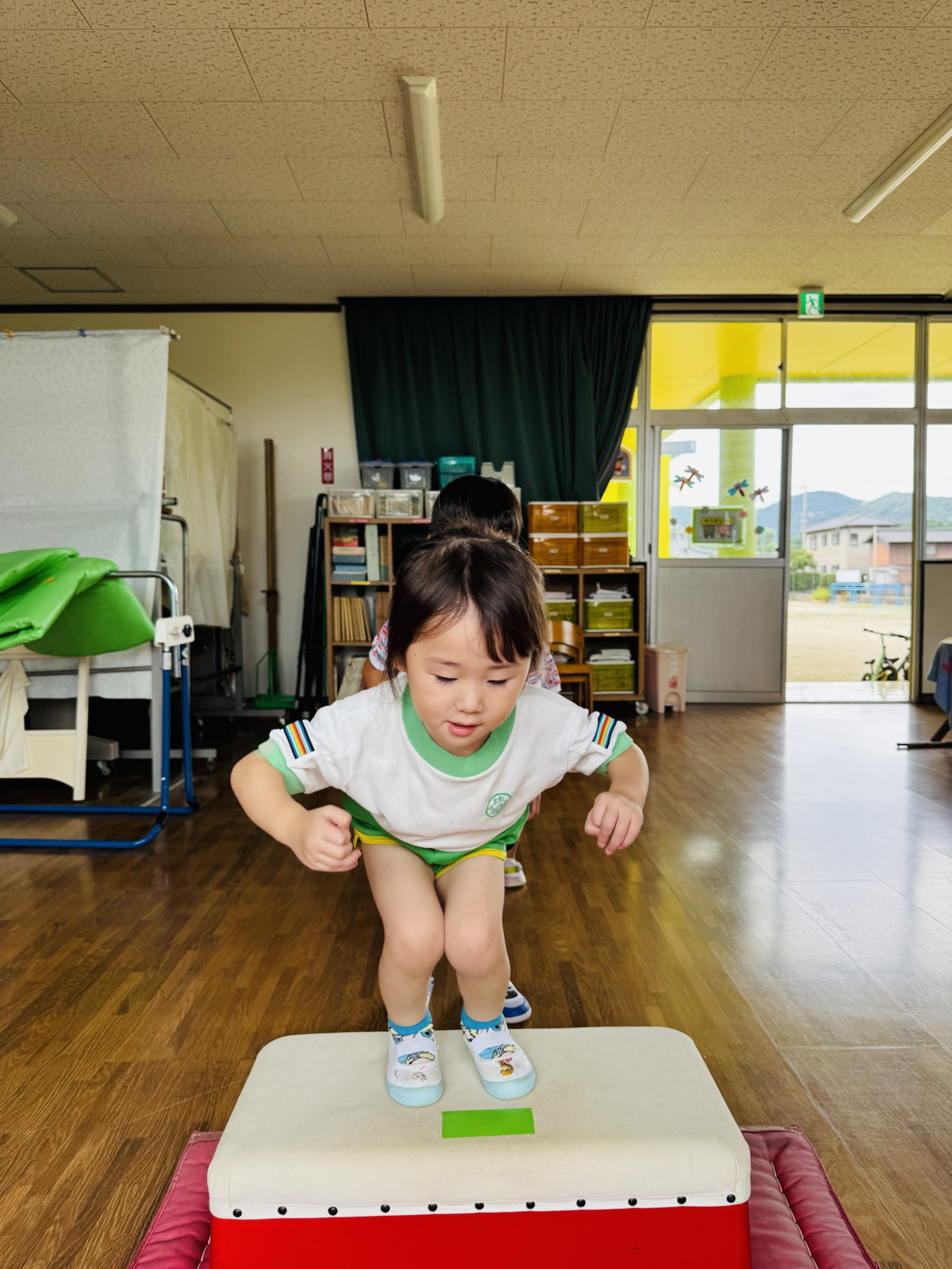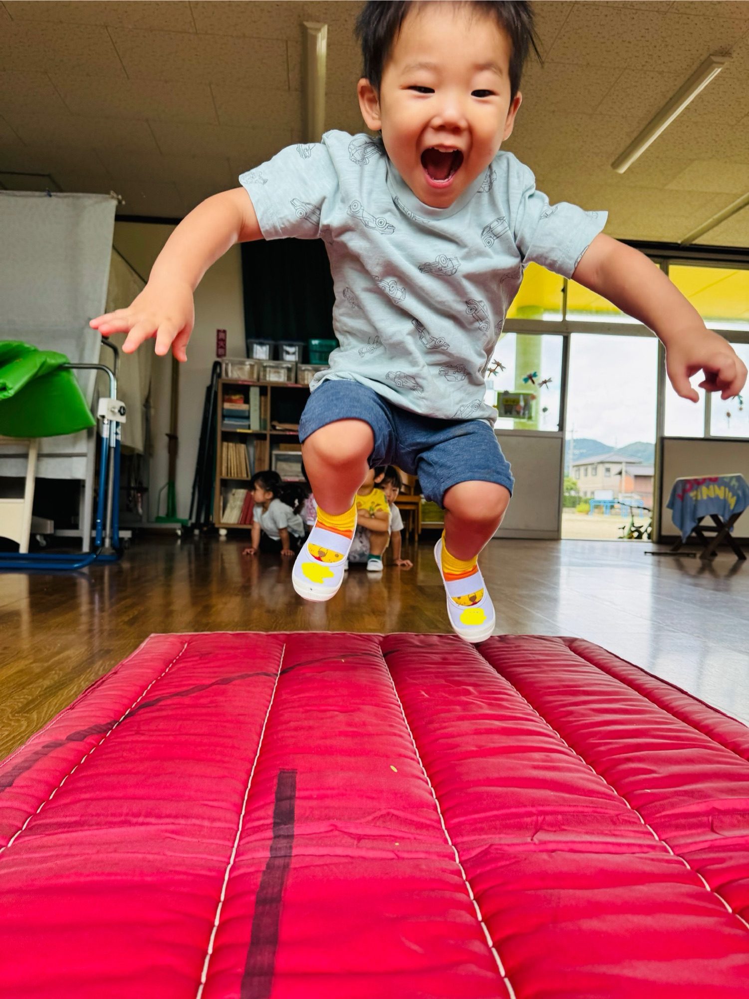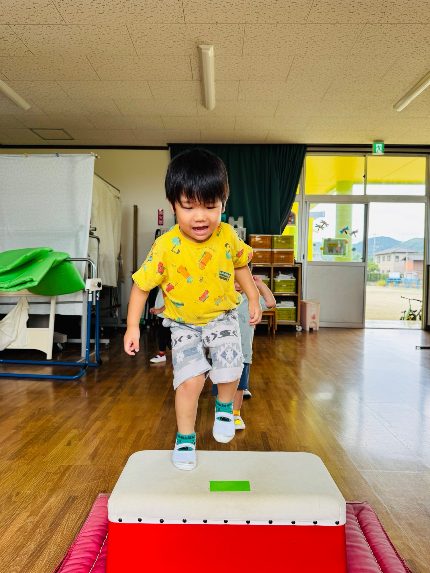 Blog 🐸ピョーン🐸 waku2 2025年9月19日 今日は体育遊びをしまた✨ カエル跳びをしたり、手押し車をしたり、ジャンプをしたり跳び箱をしたりしましたよ☺️ 楽しく遊びましたよ☺️ お家でもお話し聞いてみてください☺️ 🍌airi🍑