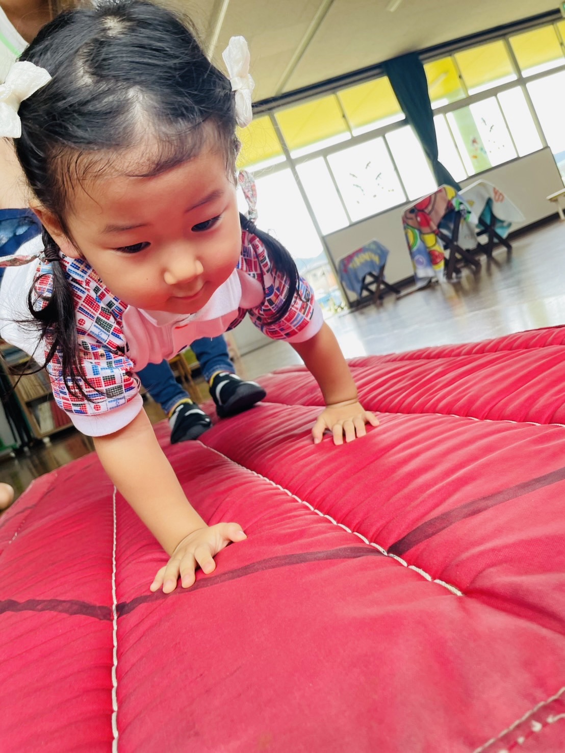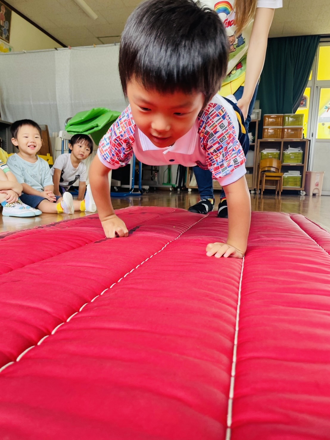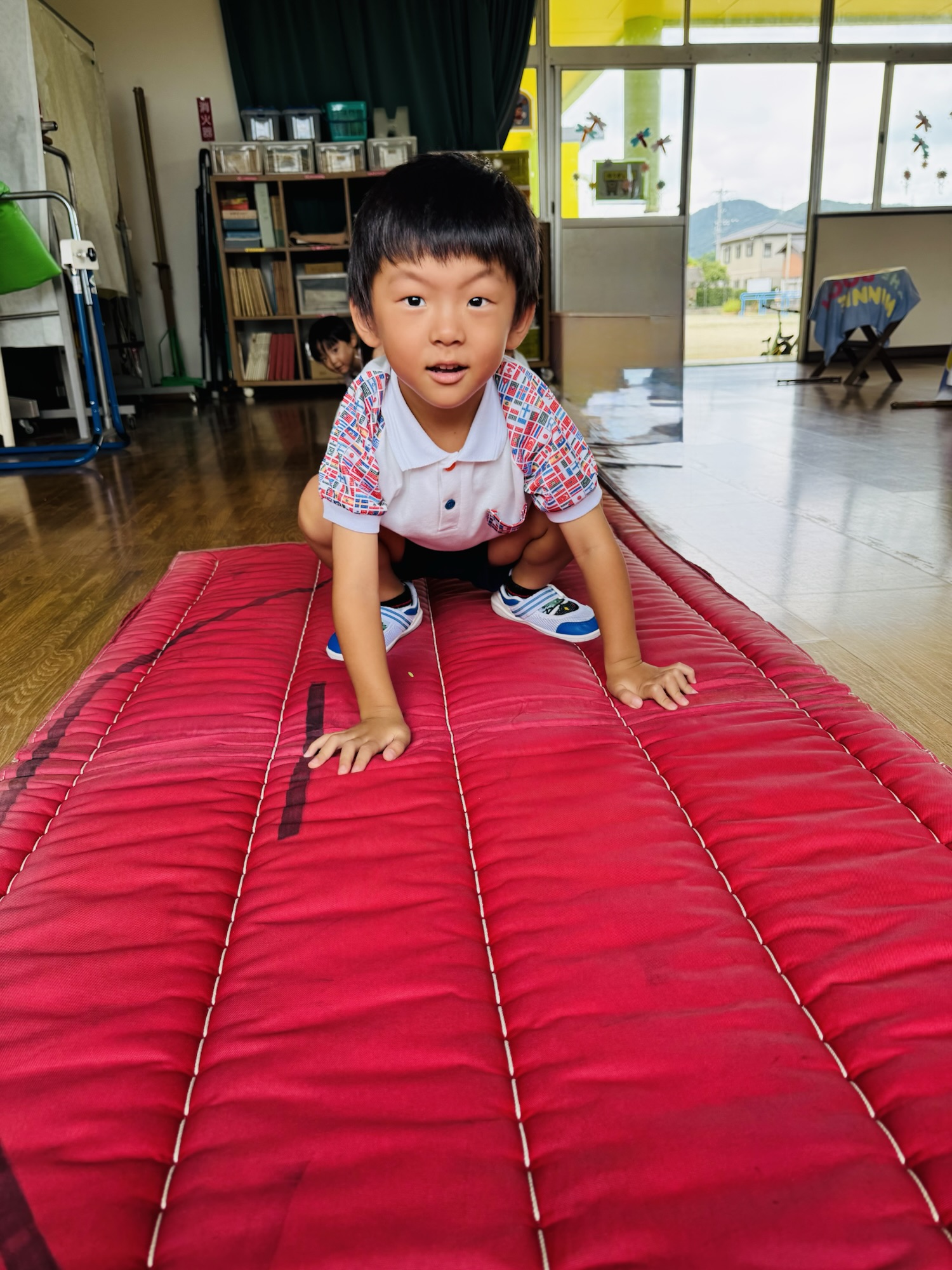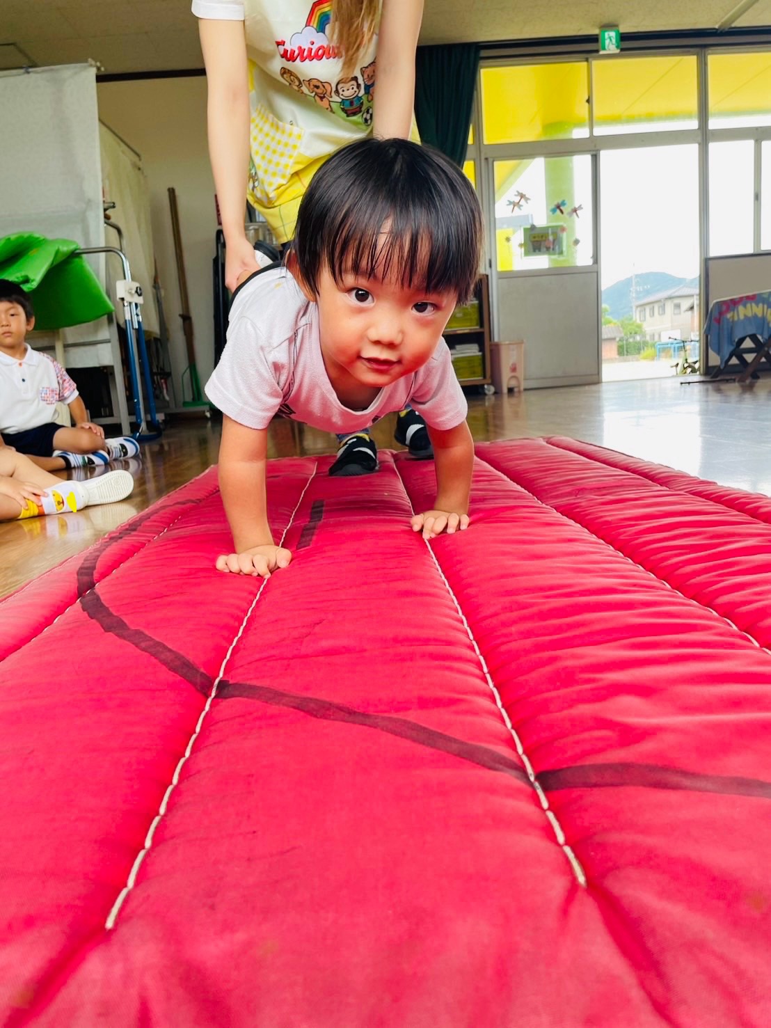 Blog 🐸ピョーン🐸 waku2 2025年9月19日 今日は体育遊びをしまた✨ カエル跳びをしたり、手押し車をしたり、ジャンプをしたり跳び箱をしたりしましたよ☺️ 楽しく遊びましたよ☺️ お家でもお話し聞いてみてください☺️ 🍌airi🍑