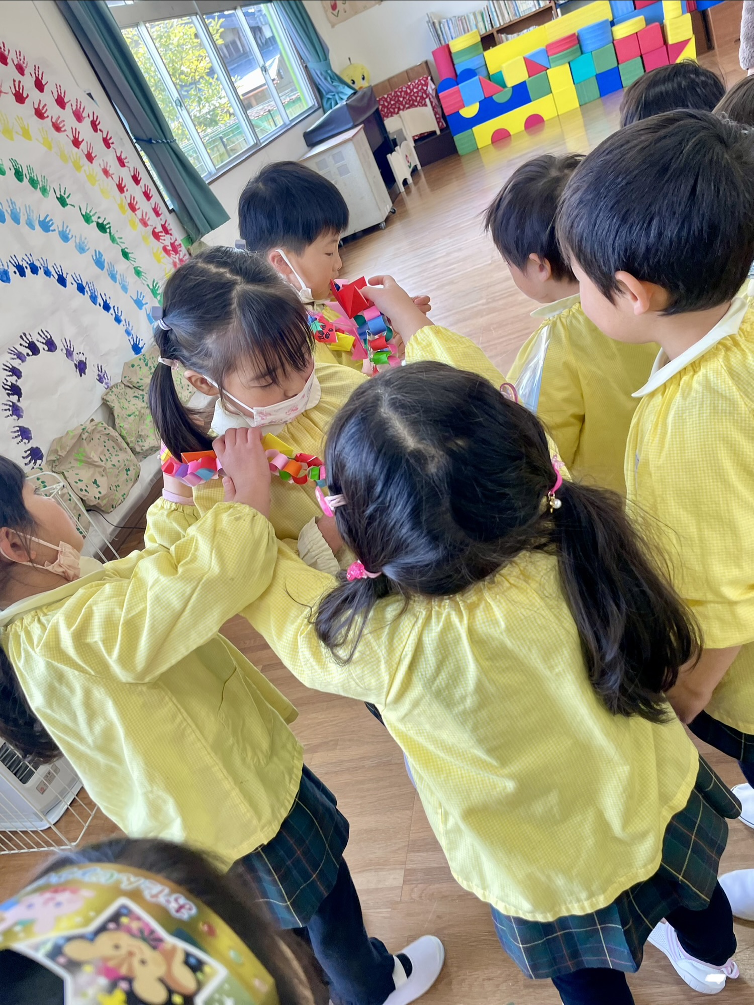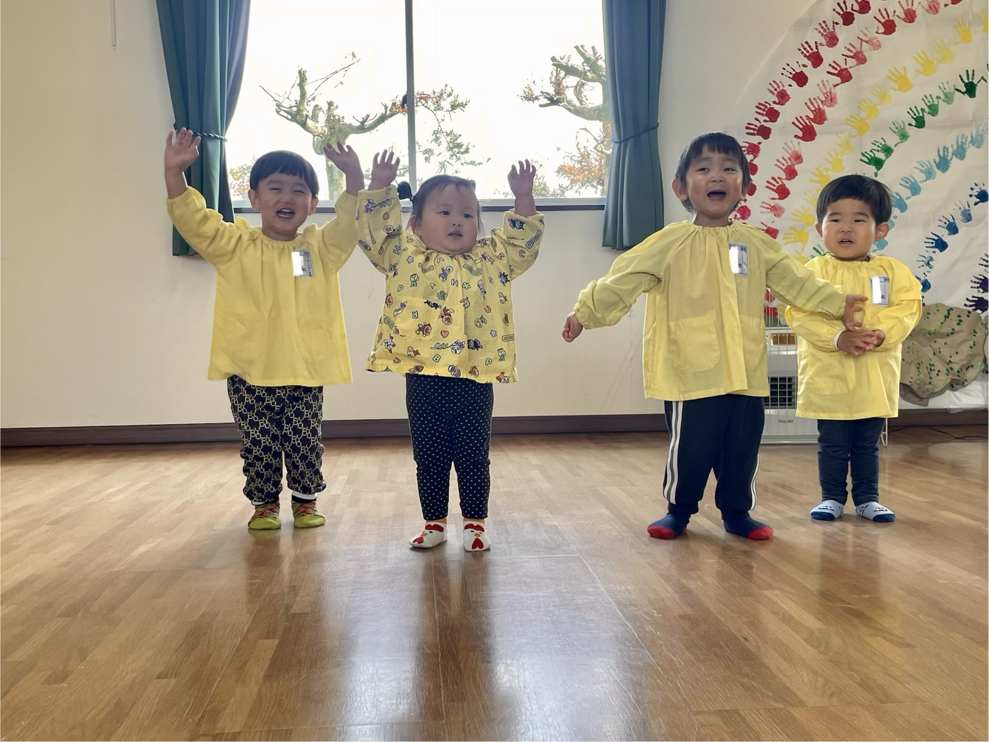 1月生まれから順番に輪の中でスキップをしてまわり、最後はみんなでスキップをしました😆